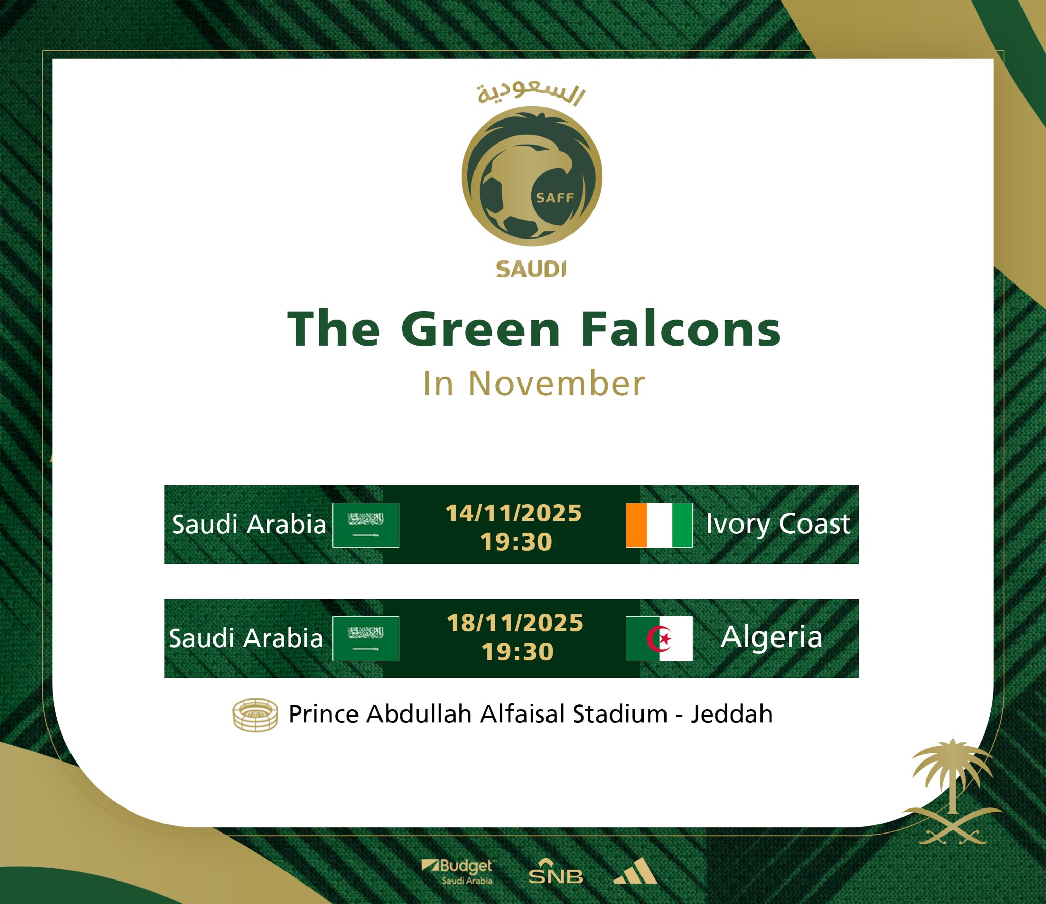 6686 Sports đưa tin ngày 7/11 rằng đội tuyển quốc gia Ả Rập Xê Út đã công bố danh sách cho ngày thi đấu tháng 11. Ả Rập Saudi sẽ thi đấu 2 trận giao hữu với Bờ Biển Ngà và Algeria trên sân nhà ở Jeddah.