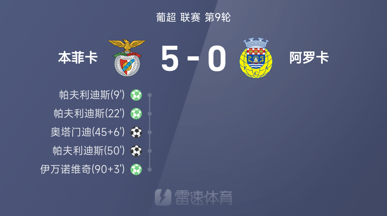 Tường thuật trận Super League Bồ Đào Nha: Pavlidis hat-trick, Benfica đánh bại Aroka 5-0