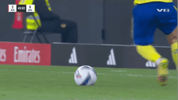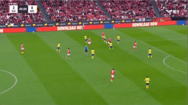 62’ biển cảnh báo vi phạm Prestiani (Benfica)