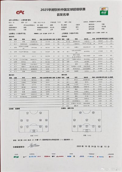 6686 Thể thao ngày 26 tháng 10 Blogger "Bull Eye Watch" tiết lộ Shandong Taishan tạm thời thay đổi đội hình xuất phát cho trận đấu với Haigang. Luis Lopez bị sa thải và Peng Xiao trở thành người đá chính.