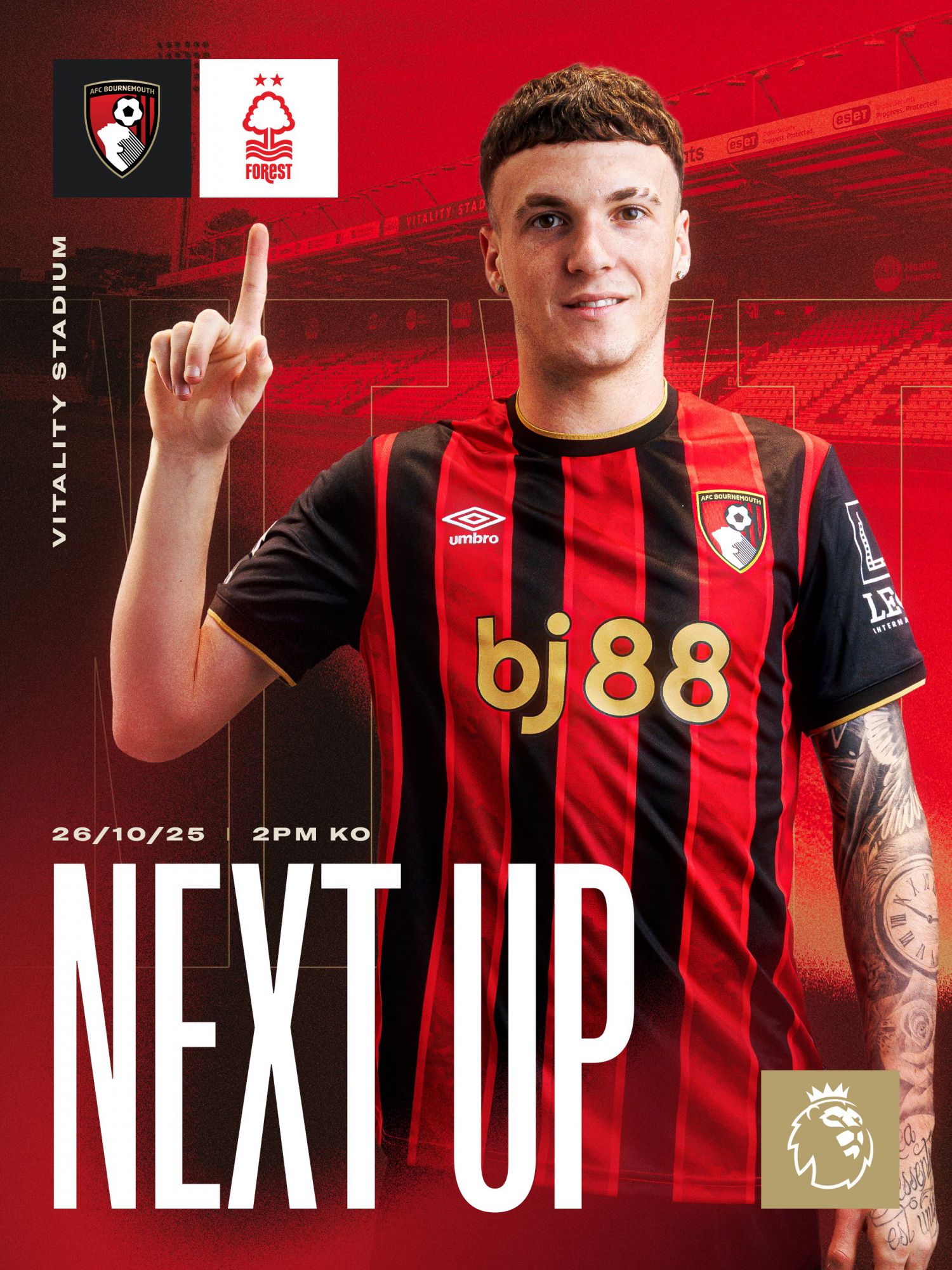 22h tối 26/10, giờ Bắc Kinh, thuộc khuôn khổ vòng 9 Ngoại hạng Anh mùa giải 2025/26, “Quả anh đào đỏ” Bournemouth sẽ thi đấu với Nottingham Forest trên sân Vitality của đội chủ nhà.