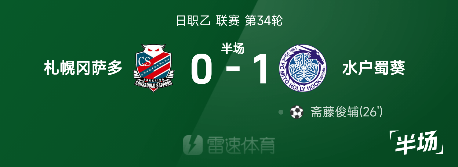 Hiệp 1 của Nippon Professional B: Shunsuke Saito ghi bàn, Consadole Sapporo 0-1 Mito Hollyhock