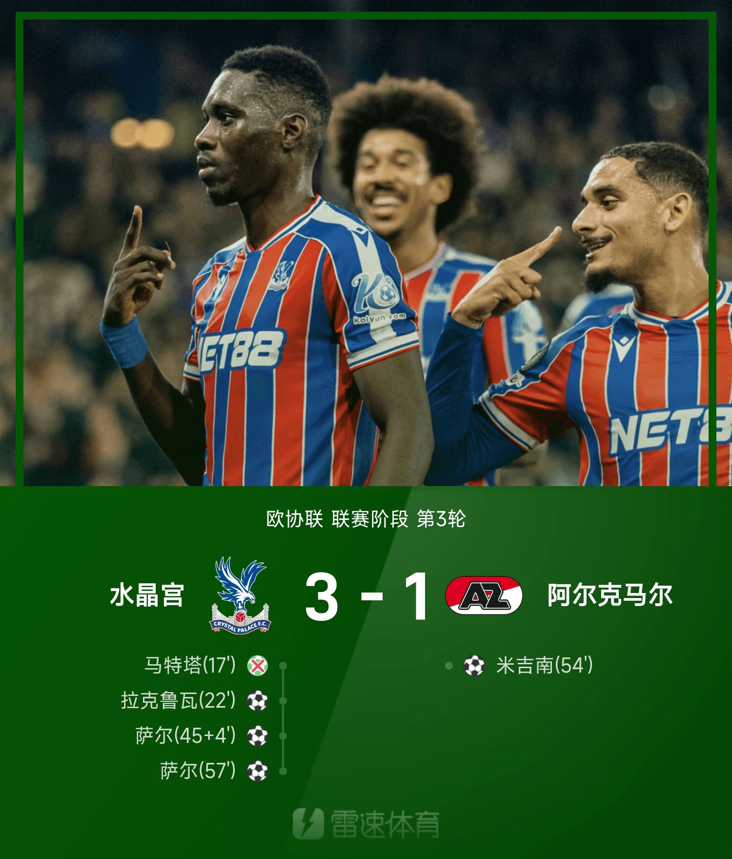 Tường thuật trận đấu UEFA Champions League: Sarr lập cú đúp, Matta bỏ lỡ một điểm, Crystal Palace 3-1 Alkmaar
