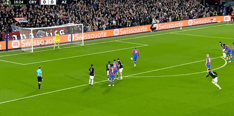 12’ chỉ trong gang tấc! Cú đá phạt của Pino rơi vào khu vực ba giây, Sarr vô lê sút chệch cột dọc