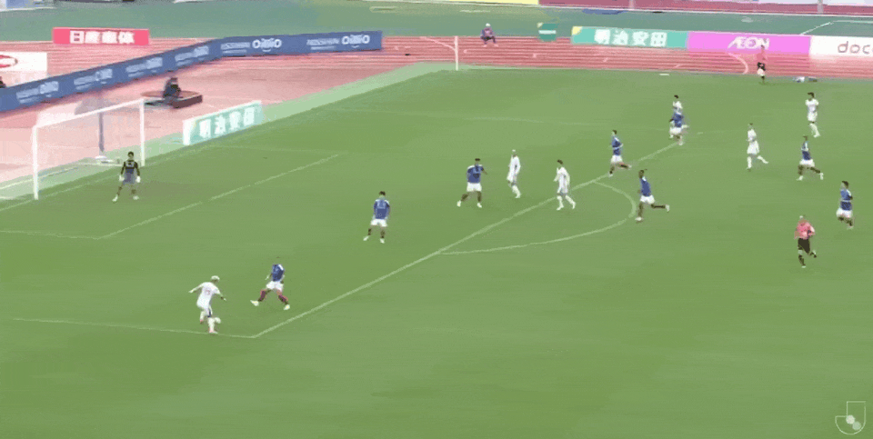 45’ quật núi rung chuyển hổ! Daiki SUGA đột phá từ cánh trái và bóng bị chặn lại ở vạch cuối sân