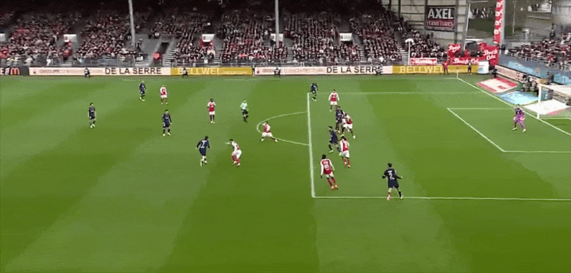 24' Paris phối hợp nhịp nhàng ở phần sân trước, Mayulu đối mặt với thủ môn chỉ bằng một cú sút và được cứu