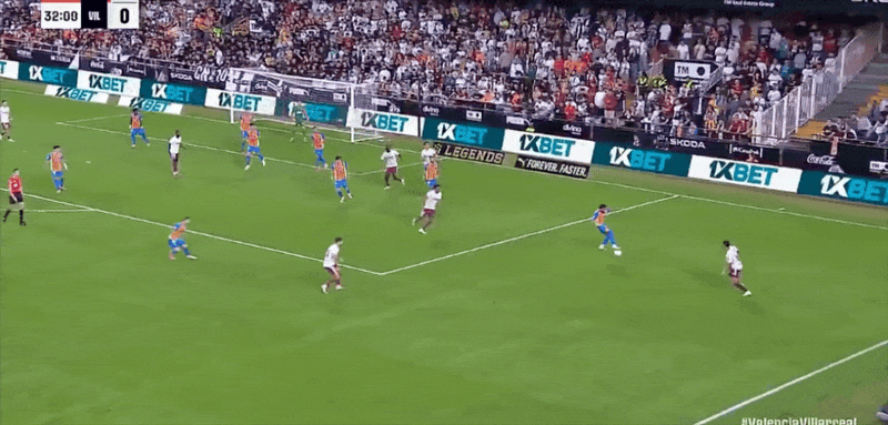 Đội hình xuất phát của Valencia: 25-Aguirre Zabala, 14-Gaya, 12-Correa, 3-Copet, 5-Tarraga, 18-Pepelu, 7-Danjuma, 11-Rioja, 16-Lo Pace, 8-Guerra, 15-Beltran