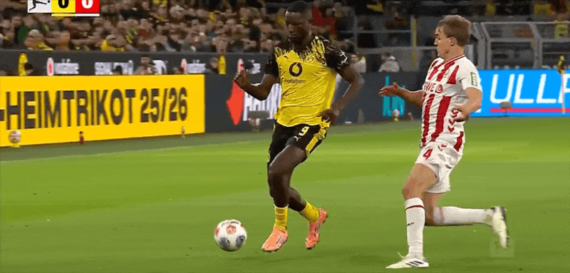 34’ Phi thường như Messi, sút trúng khung thành? Sau pha đột phá bạo lực, Adeyemi sút trúng đích chỉ bằng một cú sút duy nhất và bị cản phá
