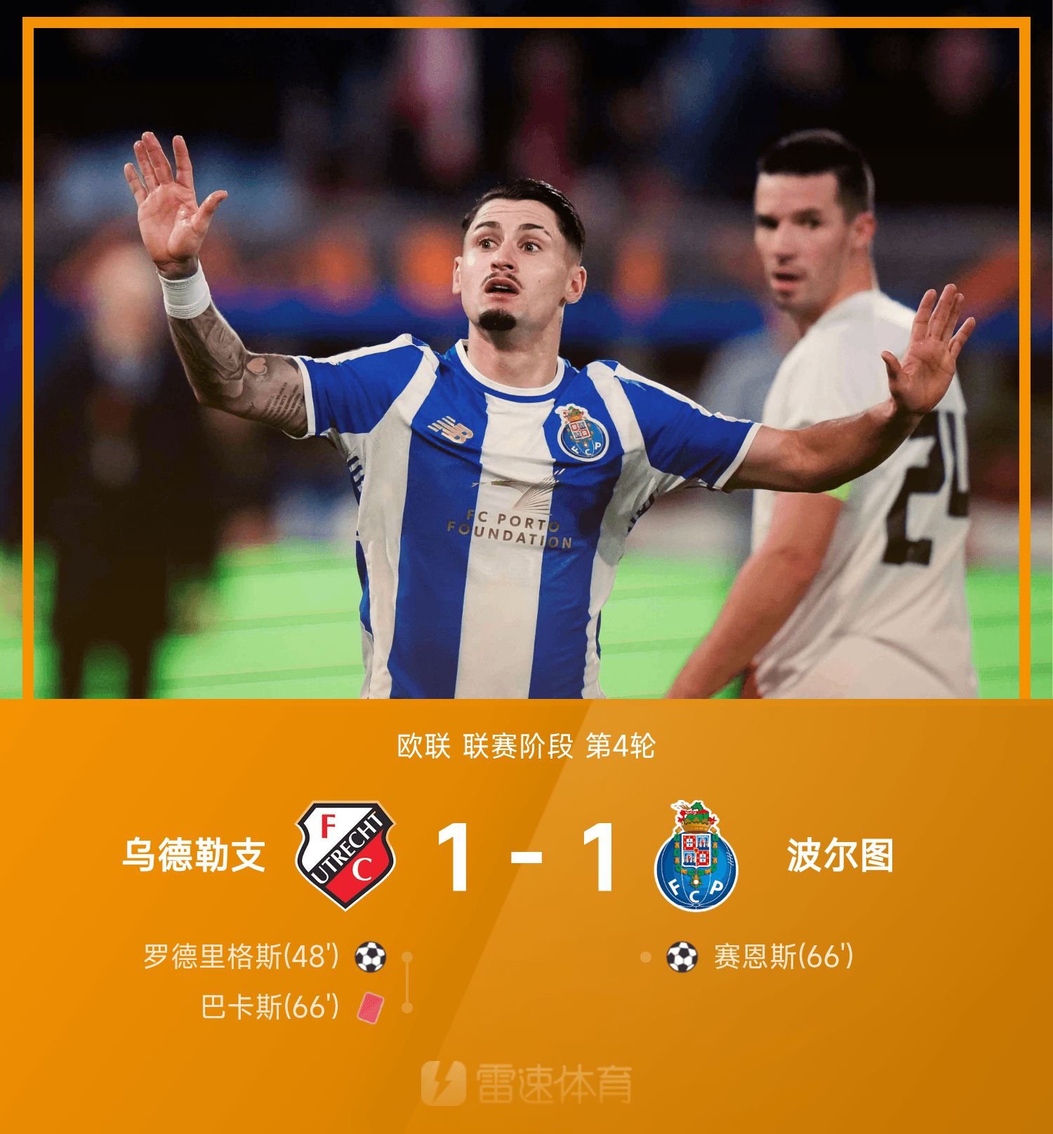 6686 Bản tin thể thao ngày 7/11 Ở vòng 4 Europa League 25/26, Utrecht gặp Porto. Trong hiệp một, không bên nào đạt được thành tựu gì. Sang hiệp hai, phút 48, Rodriguez góp công khai thông thế bế tắc. Sainz ghi bàn thắng vào lưới trống để cân bằng tỷ số. Trong khoảng thời gian này, thủ môn Bakas của Utrecht đã tranh cãi với một cầu thủ Porto và bị đuổi khỏi sân, Utrecht đáp trả bằng 10 người. Chung cuộc, Utrecht 10 người hòa Porto 1-1. Hai bên bắt tay nhau và kết thúc trò chơi.