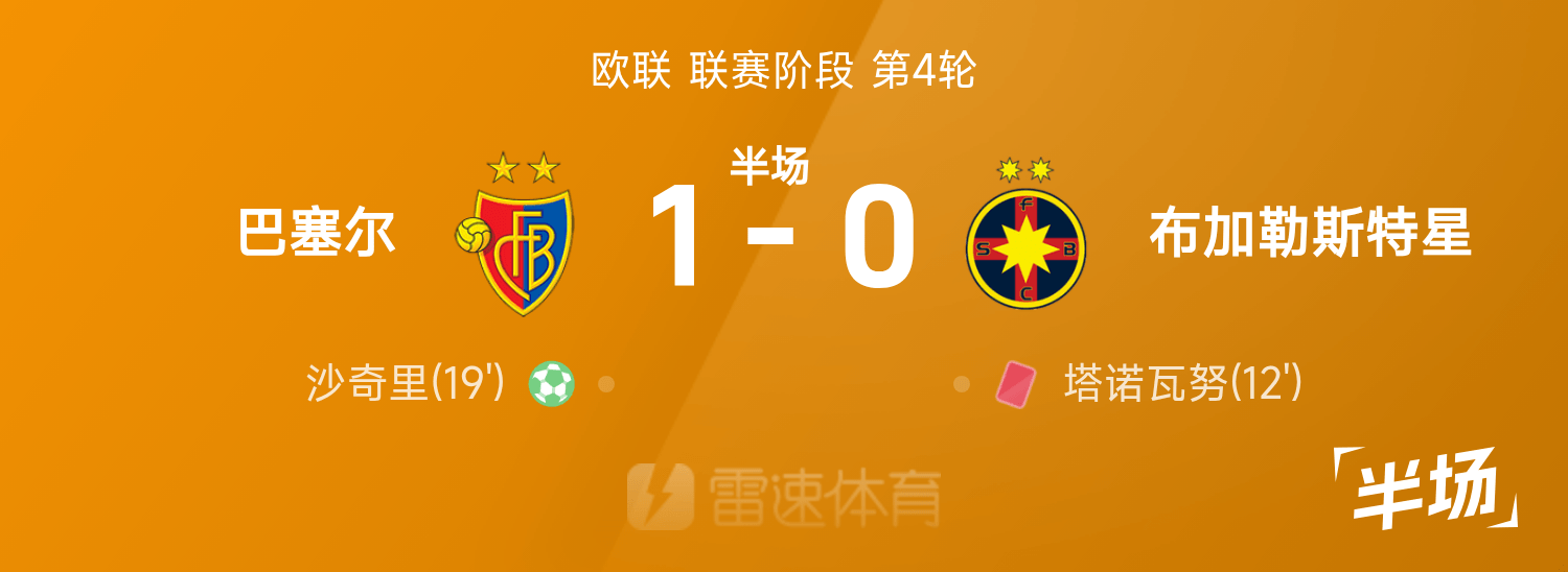 6686 Thể thao ngày 07 tháng 11 Ở vòng 4 Europa League 25/26, Basel đối đầu Steaua Bucharest. Sau giờ nghỉ giải lao, tỷ số giữa hai bên là Steaua Bucharest 1-0 Basel, với Shaqiri ghi bàn và Tanovanu đỏ mặt.