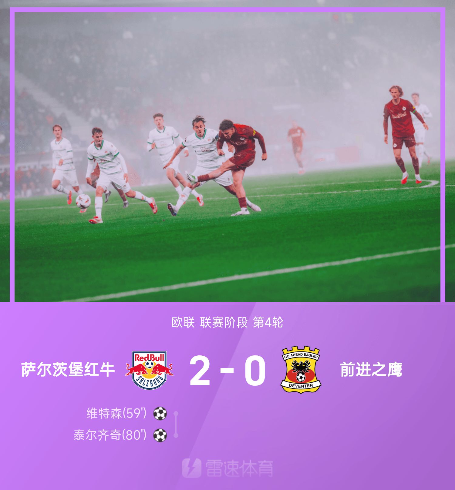 15' Bischoff vượt qua hậu vệ rồi tung cú vô lê mạnh nhưng được Buser cản phá. Salzburg vẫn dẫn trước Eagle 0-0