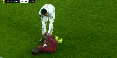 16'Bạn ổn chứ? Khi Diabat cứu bóng, anh trực tiếp hạ gục huấn luyện viên Bol của Advance Eagles bằng một pha xoạc bóng
