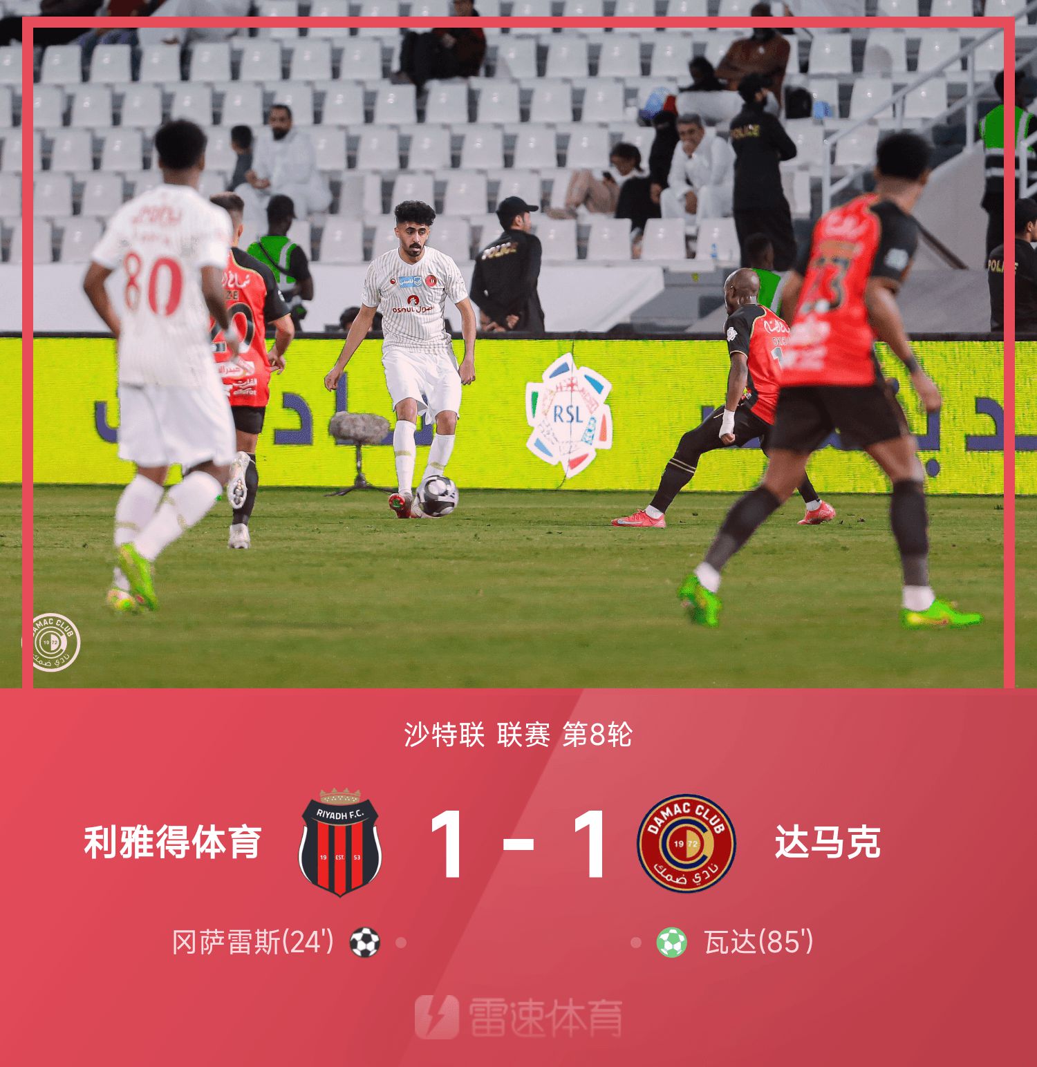 6686 Sports đưa tin ngày 07/11 rằng ở vòng 8 vòng 25/26 Saudi League, đội chủ nhà Riyadh Sports đã hòa Damak với tỷ số 1-1. Trong nửa đầu trận đấu, Gonzalez mở tỉ số cho Riyadh Sports; Trong nửa sau của trận đấu, Wada thực hiện cú sút phạt đền gỡ hòa cho Damac.