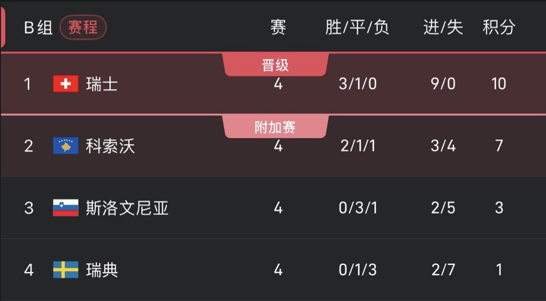 Thụy Sĩ có thể vượt qua vòng loại nếu đánh bại Thụy Điển và Kosovo không thể đánh bại Slovenia.