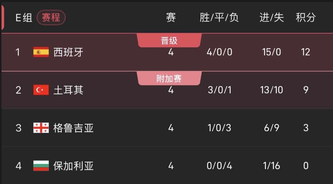Nếu Tây Ban Nha đánh bại Georgia và Thổ Nhĩ Kỳ không đánh bại được Bulgaria, nước này sẽ sớm vượt qua vòng loại. Nếu không, ngôi đầu bảng nhiều khả năng sẽ được quyết định ở vòng đàm phán trực tiếp cuối cùng giữa Tây Ban Nha và Türkiye.