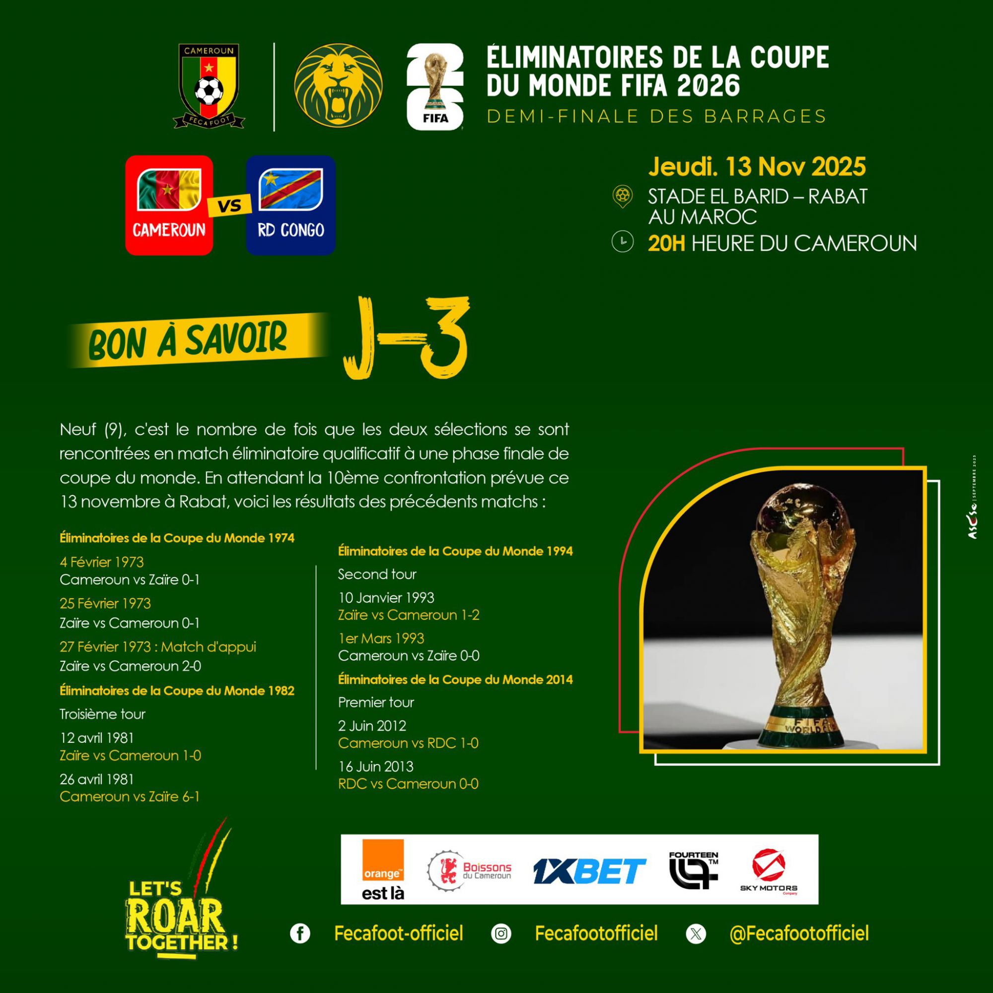 Ở vòng loại trực tiếp, Cameroon có 5 trận thắng, 4 trận hòa và 1 trận thua, với 19 điểm, kém Cape Verde 4 điểm và bỏ lỡ suất thăng hạng trực tiếp duy nhất trong bảng. Cộng hòa Dân chủ Congo đang có 22 điểm với 7 trận thắng, 1 trận hòa và 2 trận thua, xếp sau Senegal 2 điểm. Thật đáng tiếc vì nó đã bỏ lỡ hạn ngạch trực tiếp.