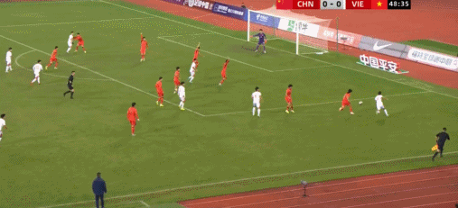 49' Đội tuyển Việt Nam tạo ra mối đe dọa gây khó chịu. Cú sút của Ruan Guoyue bị hậu vệ cản phá và bị thủ môn bắt được