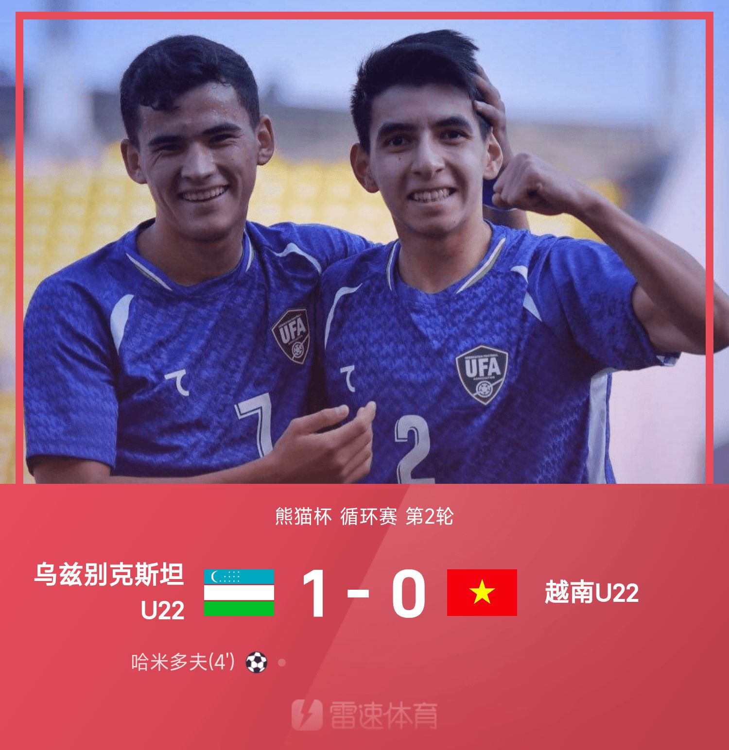 6686 Bản tin thể thao ngày 15/11 Ở trận đấu thứ hai vòng tròn Panda Cup 2025, U22 Uzbekistan đã đánh bại U22 Việt Nam với tỷ số 1-0. Trong suốt trận đấu, Khamidov đã ghi bàn. Hiện tại chỉ có đội tuyển U22 Trung Quốc là chưa vô địch Panda Cup. ĐT trẻ toàn quốc thua Việt Nam 0-1 ở trận đầu tiên. 19h35 tối nay, Đoàn Thanh niên Quốc gia Hàn Quốc sẽ bước vào thử thách.