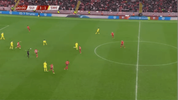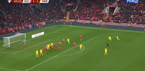 31’ Thụy Sĩ thực hiện một pha đe dọa chuyền bóng trong vòng cấm, nhưng Widmer đánh đầu tung lưới nhưng đi chệch mục tiêu