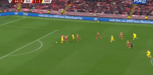 61' Embolo đột nhập vào khu vực ba giây sau khi cướp bóng, nhưng bị thủ môn chặn lại từ vạch cuối sân