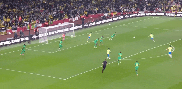 45' Khu vực ba giây của Brazil rất hỗn loạn và Ederson đã cản phá cú sút của đối thủ hai lần liên tiếp