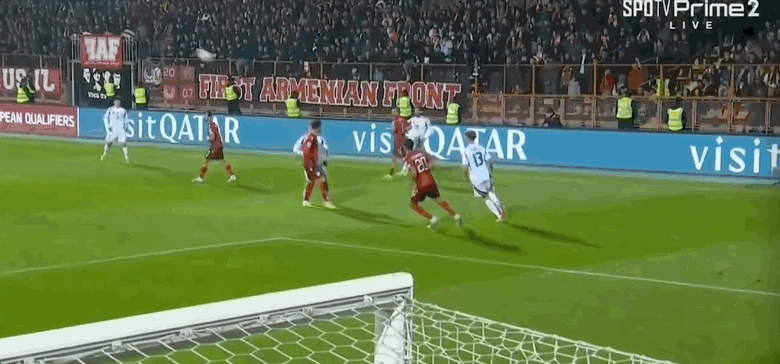 42’ Schaeffer không sút trúng đích trong vòng ba giây và thủ môn người Armenia đã tịch thu bóng