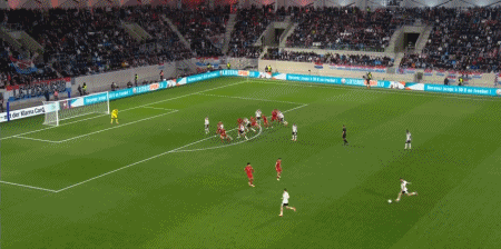60' Baku dừng bóng ở đầu vòng cung để điều chỉnh và sút bóng về phía khung thành. Bóng bay vọt xà ngang và ra khỏi khán đài