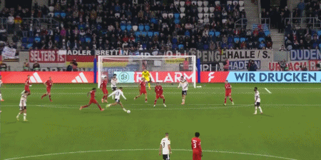8' Wirtz nhận bóng trong vòng 3 giây rồi bất ngờ tung mũi tên lạnh lùng vào góc xa, nhưng bóng đi quá đúng và bị thủ môn cản phá