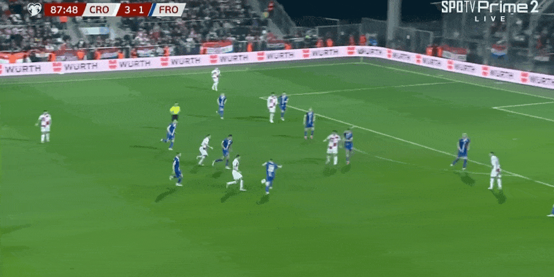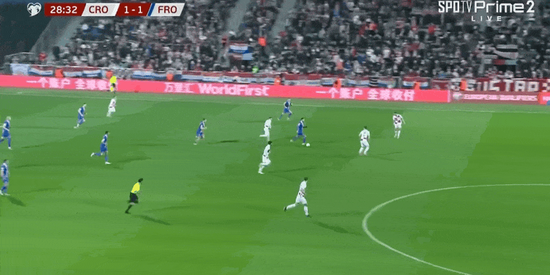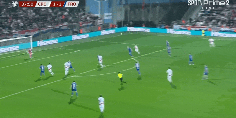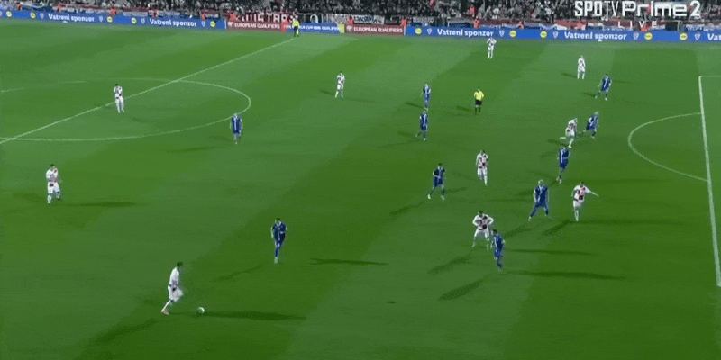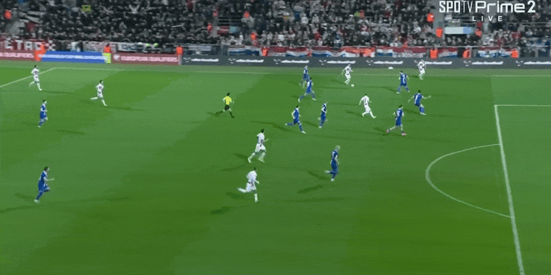 52' Stanisic chuyền bóng vào vòng cấm trong khu vực, và cú đánh đầu của Kramaric nảy hơi chệch ra ngoài