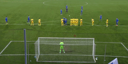 45+1’ Bajlatarevich sút phạt từ ngoài vòng cấm nhưng thủ môn dũng cảm cản phá