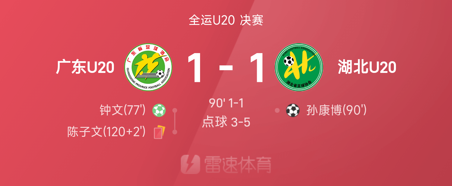 Đội hình xuất phát U20 Hồ Bắc: 1-Yao Haoyang, 34-Wang Kang (90'25-Yu Jing Cheng), 11-Wei Suowei (46'19-Wei Zixian), 5-Yu Tianle, 2-Sun Kangbo, 16-Yang Xi, 6-Xia Zihao, 10-Fan Xulin (96'8-Tốc độ cao), 18-Xiong Jizheng, 15-Jiang Li Xun (82'14-Yang Bowen), 13-Huang Kaijun (67'21-Wang Zhi Cheng)