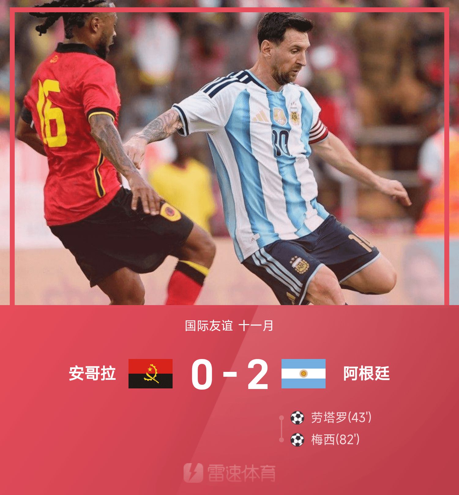 81' Messi ghi bàn bằng cú vô lê cực mạnh từ cánh trái trong khu vực ba giây, và Argentina tạm thời dẫn trước Angola 2-0