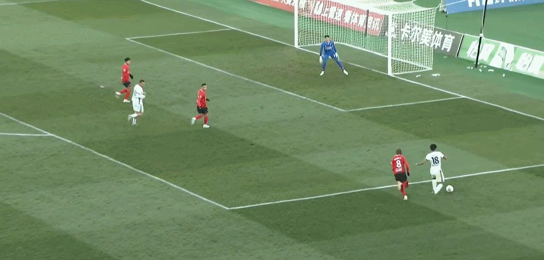 64’ Chen Binbin nhận đường chuyền ngang trong khu vực ba giây và bắt đầu quét bóng. Liu Weiguo cứu bóng ổn định