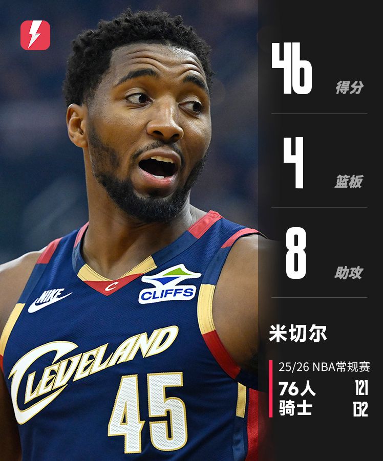 Trạng thái cạnh tranh đang nóng! Ngôi sao của Cavaliers, Mitchell đã ghi được 46 điểm và 8 pha kiến tạo, thành tích ghi bàn cao nhất trong mùa giải!