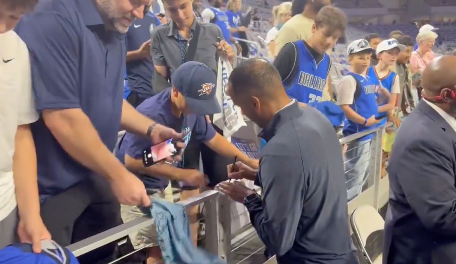 Harrison ký tặng và chụp ảnh cho fan Mavericks, cố tình bỏ qua fan mặc đồng phục Doncic