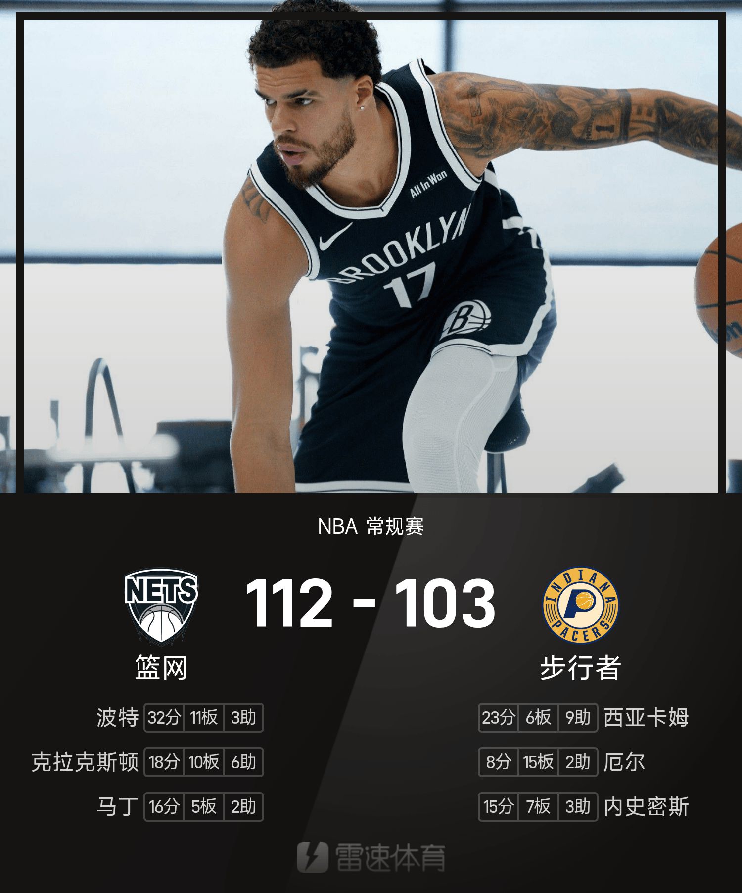 Báo cáo trận đấu NBA: Porter Jr. 32 điểm và 10 rebound, Nets 112-103 Pacers