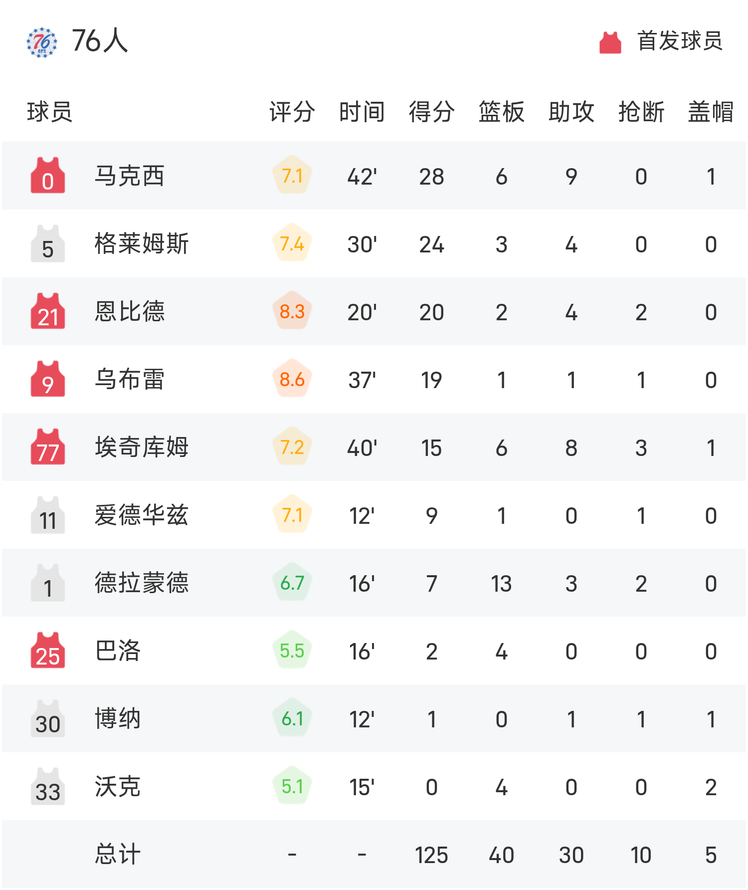 Maxi ghi 28 điểm, 6 rebound và 9 kiến tạo để dẫn dắt 76ers đến chiến thắng. Ball ghi 27 điểm, 9 rebound và 8 kiến tạo để ngăn chặn thất bại.