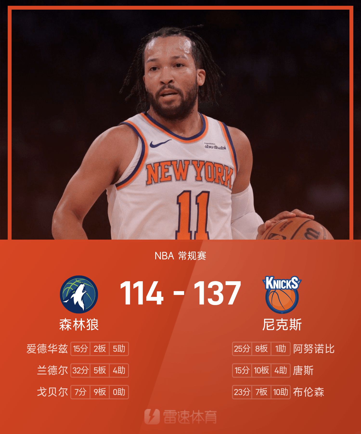 Cuối trận, Knicks đánh bại Timberwolves với tỷ số 137-114.