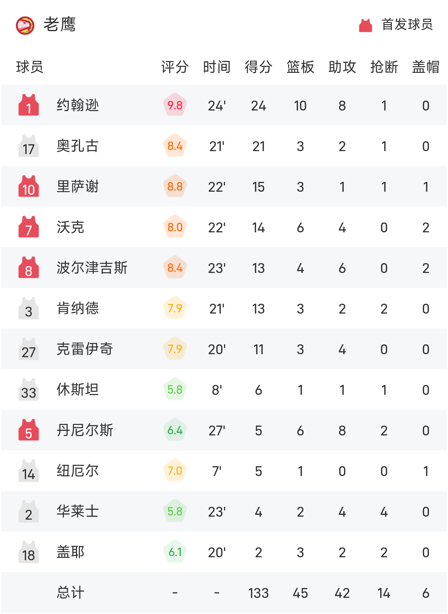 Báo cáo trận đấu NBA: Johnson có 24 điểm, 10 rebound và 8 kiến tạo, Hawks đánh bại Kings 133-100