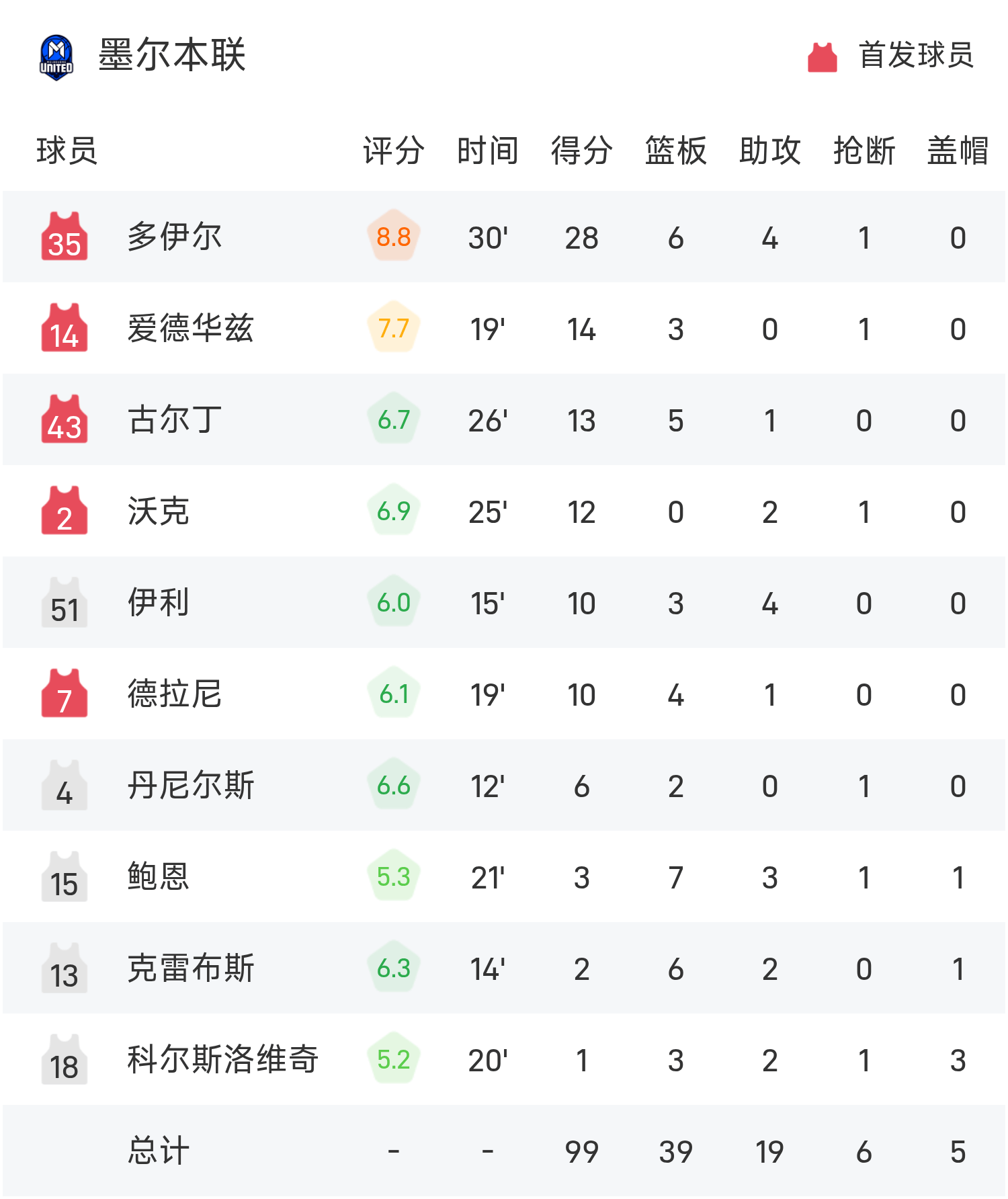 Doyle ghi được 28 điểm cao nhất trận, 6 rebound và 4 kiến tạo, đưa Melbourne United đến chiến thắng.