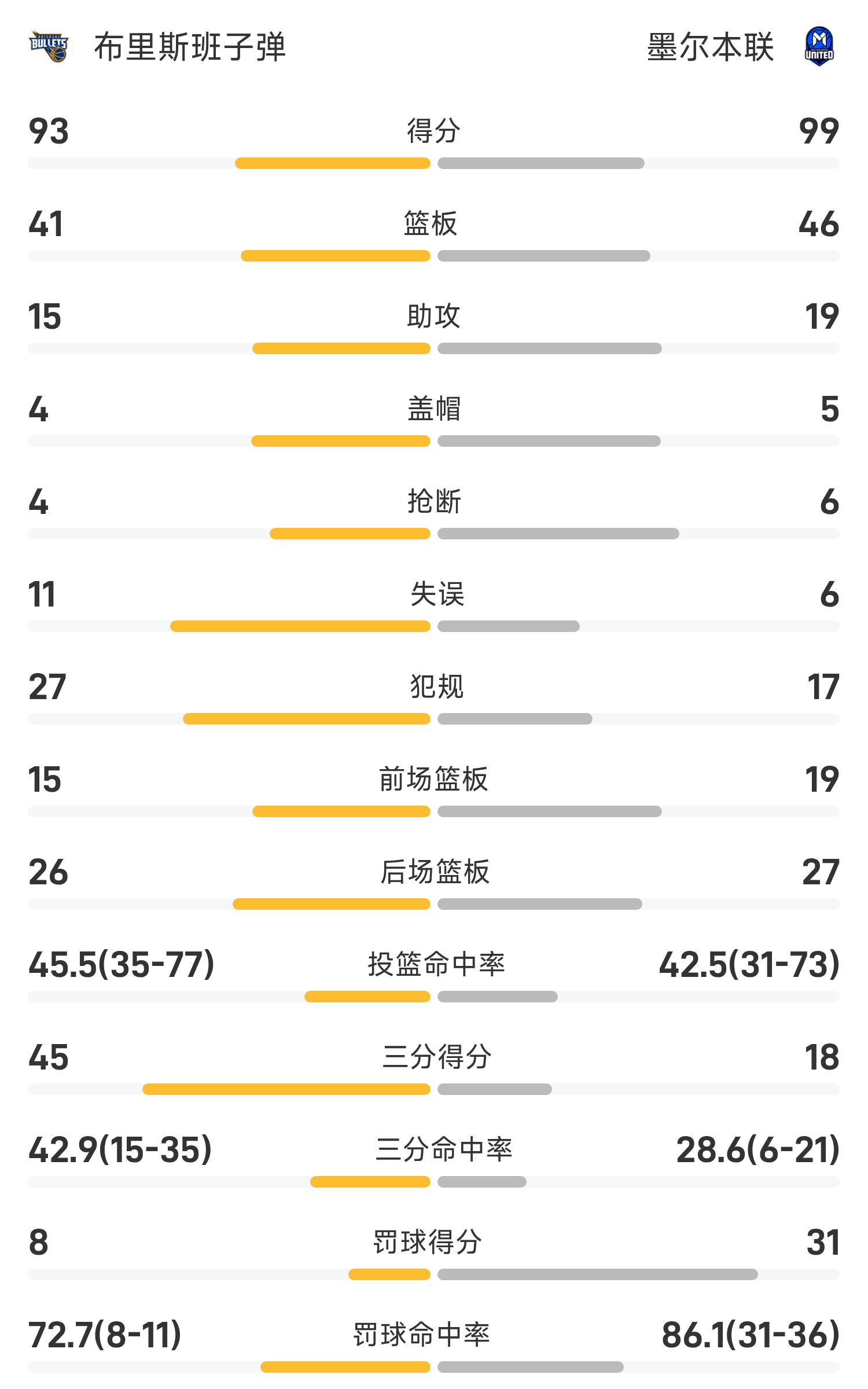 Cuối trận, Melbourne United đã đánh bại Brisbane Bullets với tỷ số 99-93.
