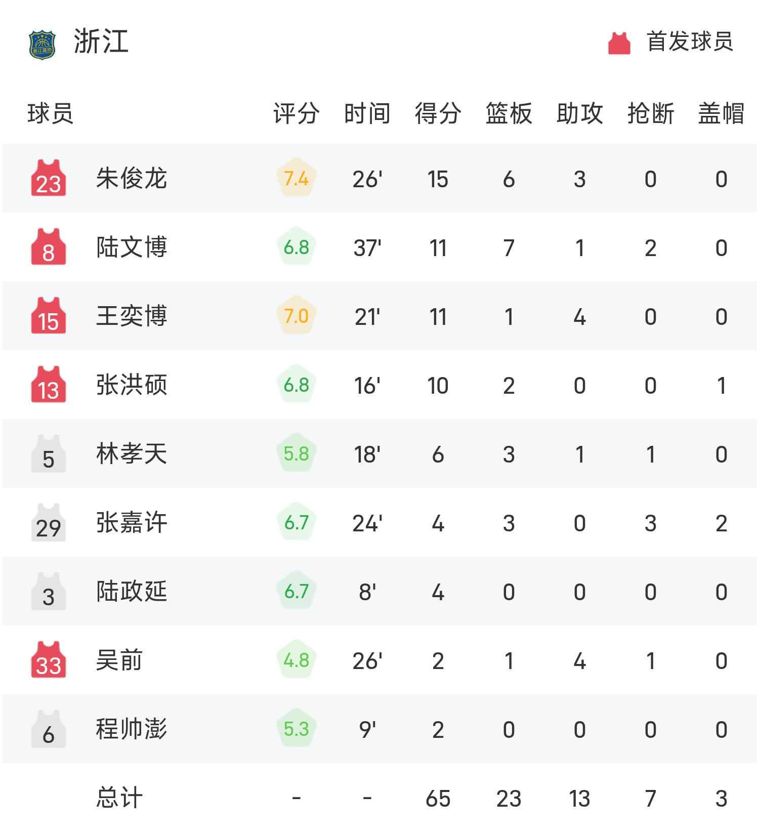Cuối trận, Chiết Giang thua Quảng Đông với tỷ số 65-101.