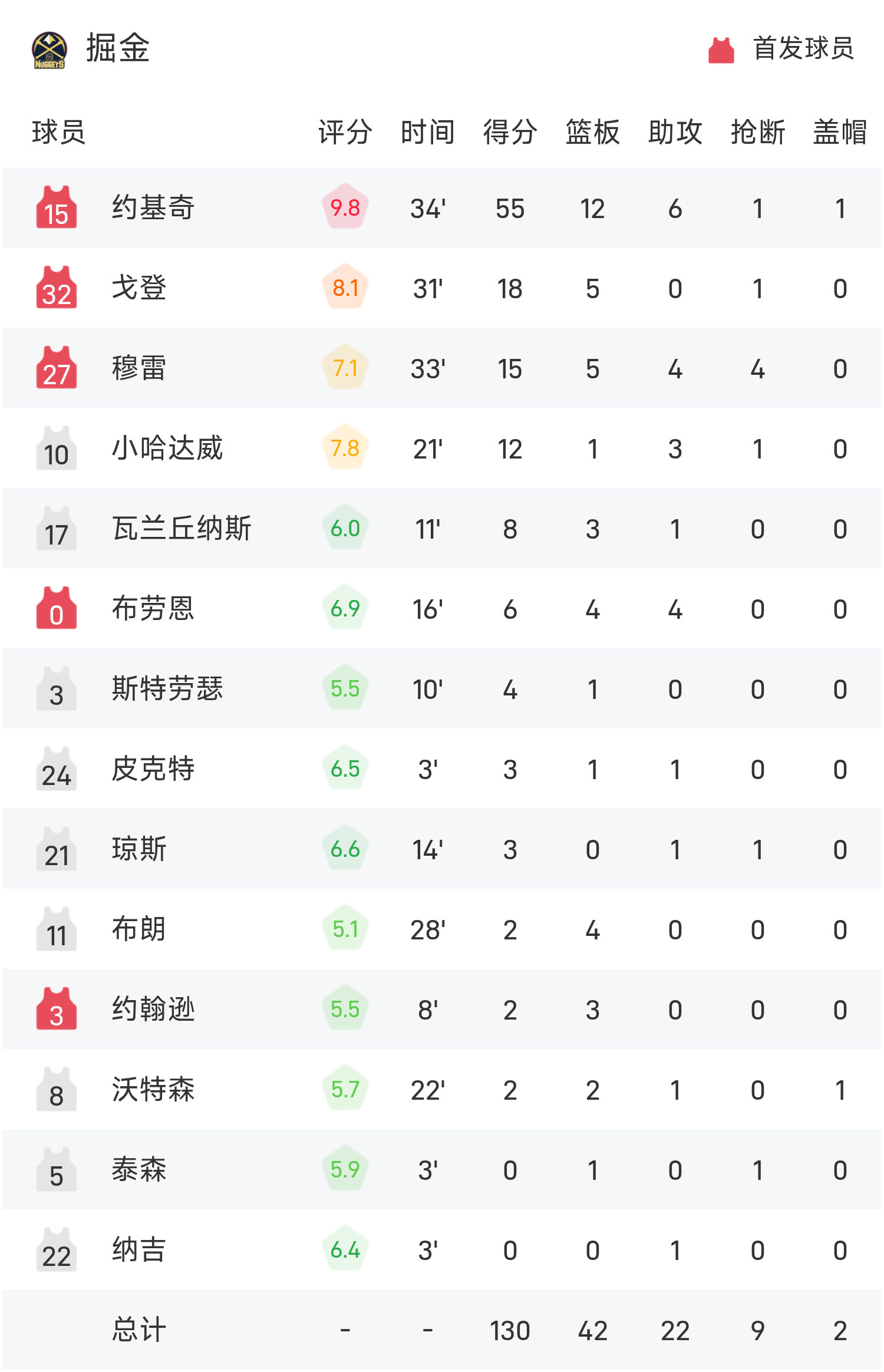 Jokic đã ghi được 55 điểm cao nhất trận, 12 rebound và 6 kiến tạo, đưa Nuggets đến chiến thắng.