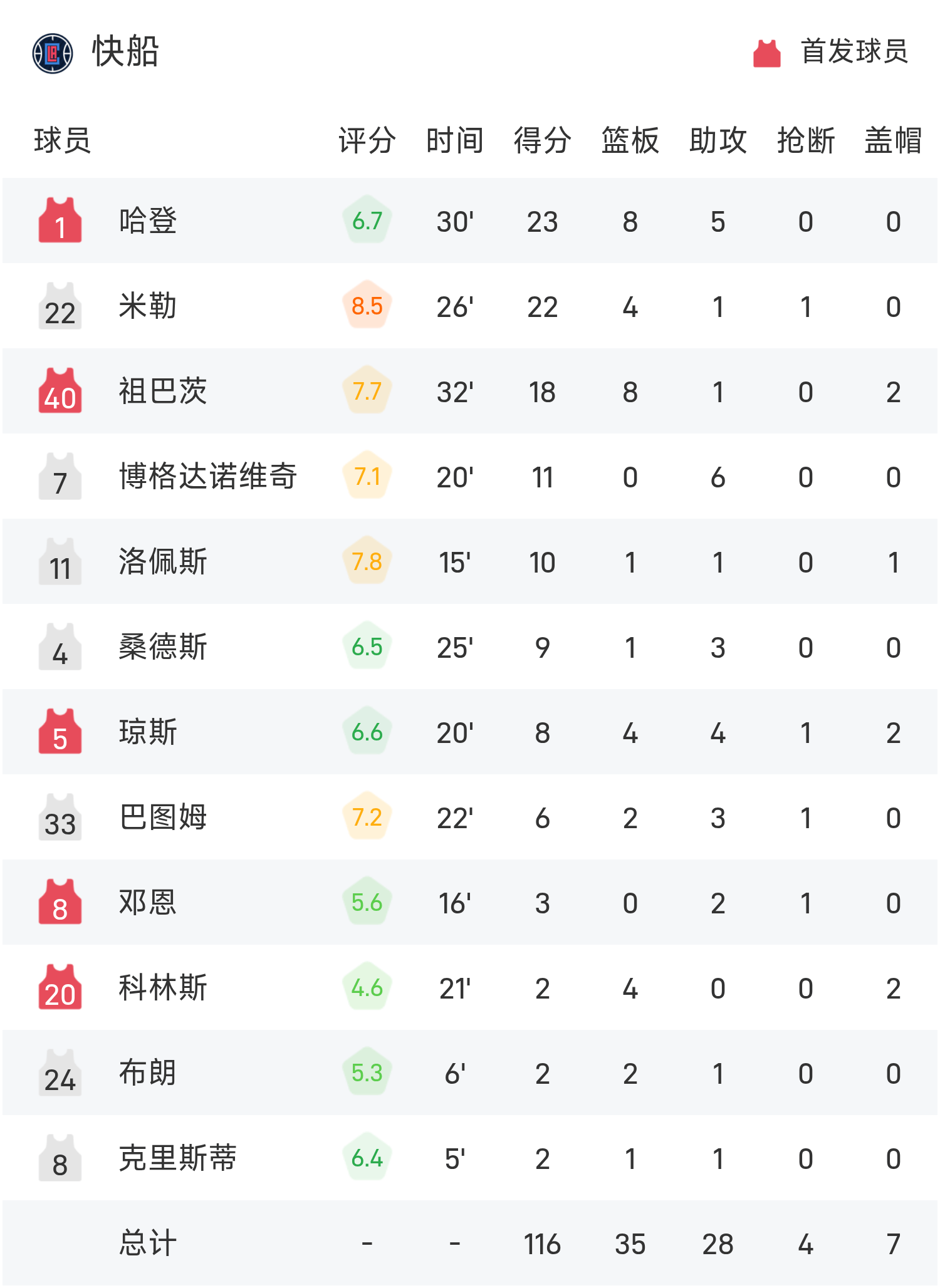 Cuối trận, Clippers thua Nuggets với tỷ số 116-130.